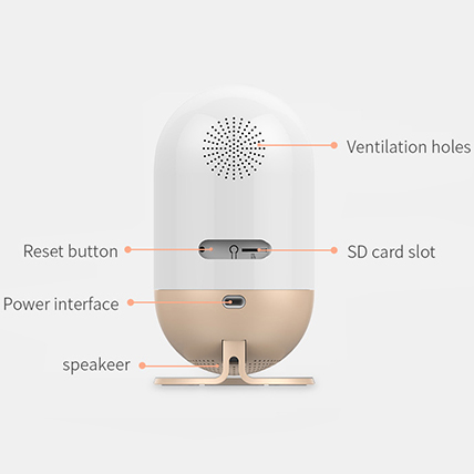 OthersSurface material:ABS resin,aluminum alloy;Application scenario:Indoor;Power interface:DC 5V 2A Supporting independent power supply of built-in battery;Network reset button:One;Product power consumption:1~5w,depending on scenarios;Working environment:Temperature:-10°C~40°C Humidity:40%~75%;Storage environment:Temperature:-40°C~55°C Humidity:55%~90%;Weight:Gross weight:558g;Accessories:Power adapter,power cord,network reset pin,base,quick install ation guide
